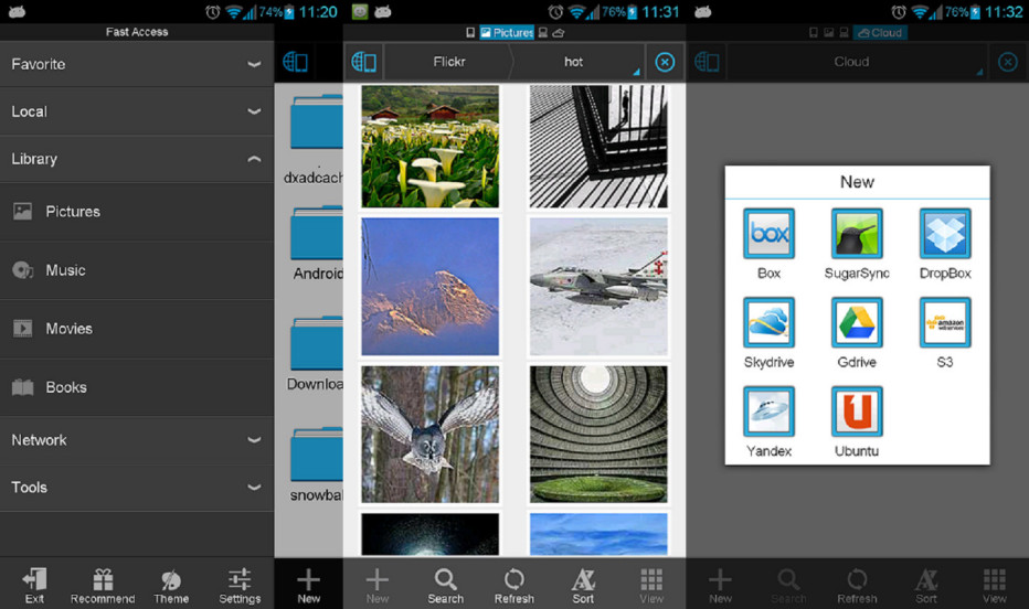 ES File Explorer provides easy access to pictures, music, video, documents, and other files on both your Android devices and your computers. It allows users to manage their resources freely, no matter where are they.