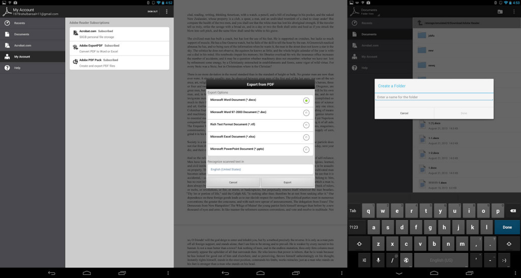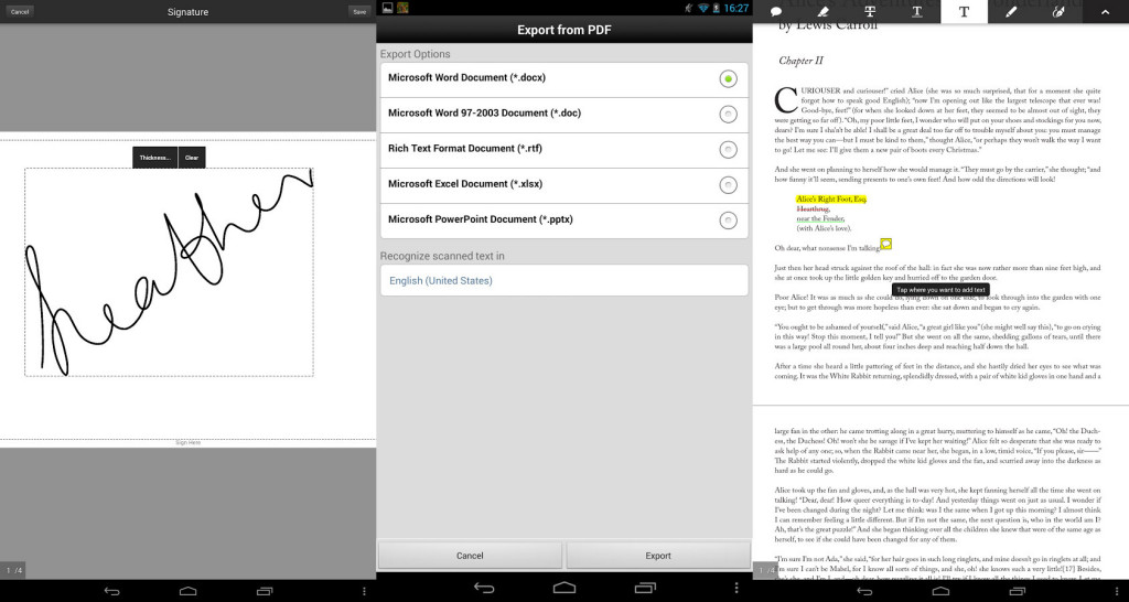 Adobe Reader was initially available for PC and MAC, but now you can use it on your smartphone. It comes with all needed functions including text search, zoom, Night Mode, Brightness Lock, Export PDF files to Word or Excel using the Adobe ExportPDF online service and many more.