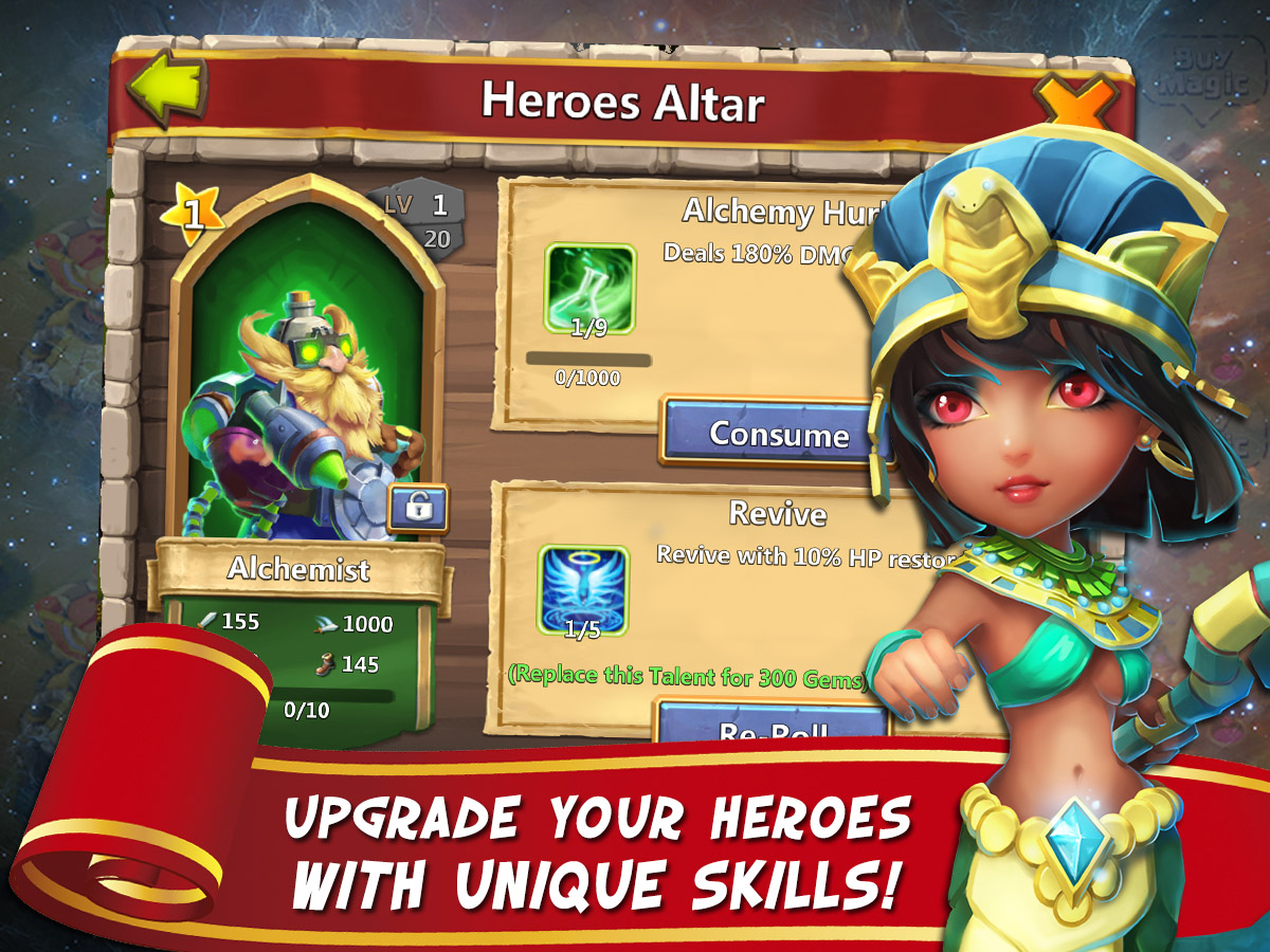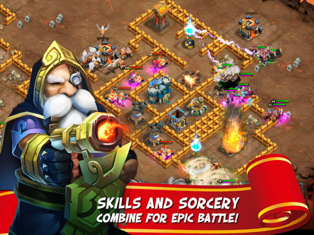 Castle Clash features include build and upgrade an impenetrable fortress; create the ultimate army; fast-paced, thrilling, and realistic battles; heroes versus other heroes on the Arena; powerful spells and many more. Castle Clash requires an internet connection all the time.