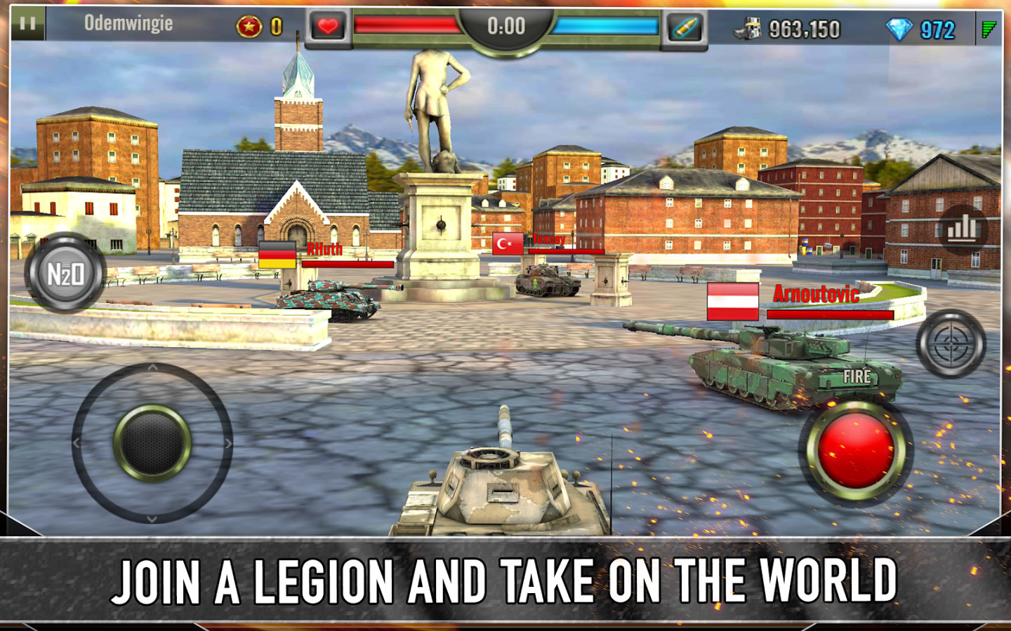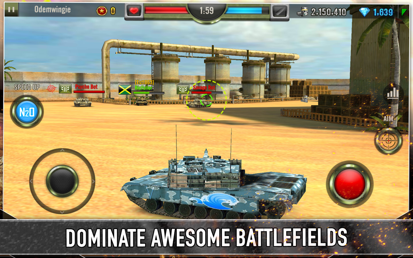 There are 15 powerful tanks to choose from with different upgrades including firepower, speed, fire rate and more. There are also 5 different arenas to battle on and 8 in-game power ups to find on the battlefield.