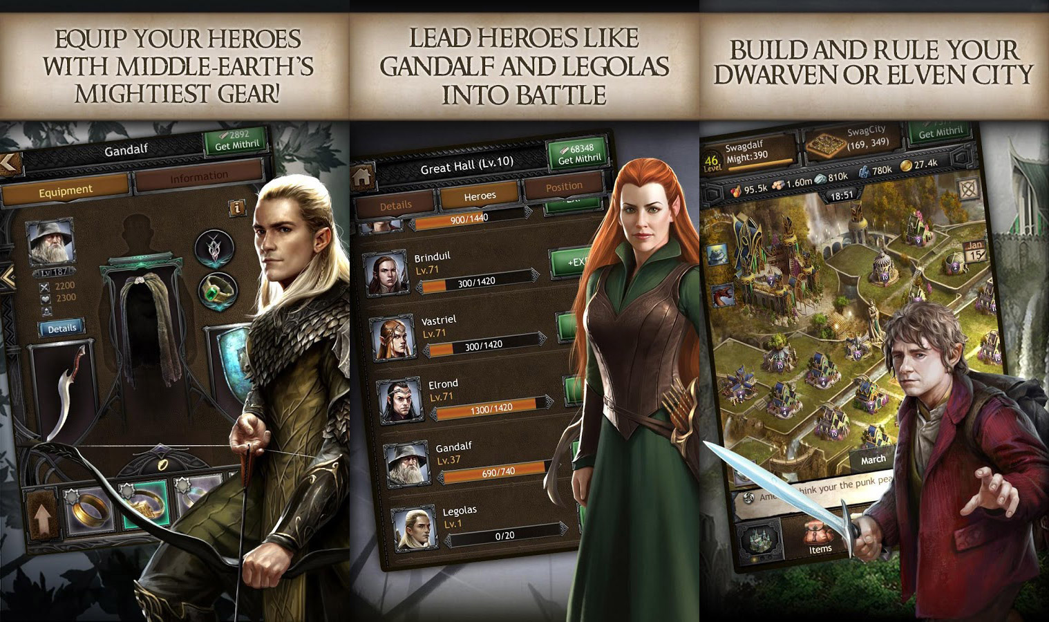 The Hobbit Kingdoms of Middle-Earth is a massive multiplayer strategy game. You can now join thousands of other players worldwide and to play versus or in an alliance. Of course, the famous heroes – Gandalf, Bilbo, Thorin Oakenshield, Legolas and some more will help you to defeat the Goblin threat.