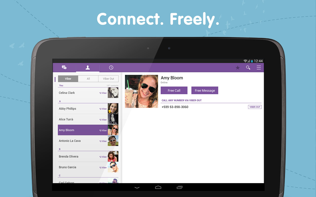 On Viber, your phone number is your ID. The app syncs with your mobile contact list, automatically detecting which of your contacts have Viber.